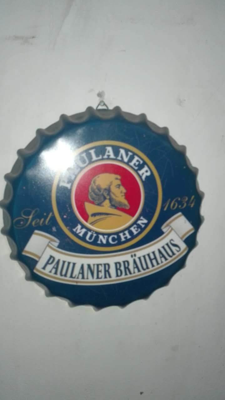 下面彩带设计成中文店名和拼音,圆圈内可以设计有特色、突出、醒目店名的图案,有点休闲吧的风格。