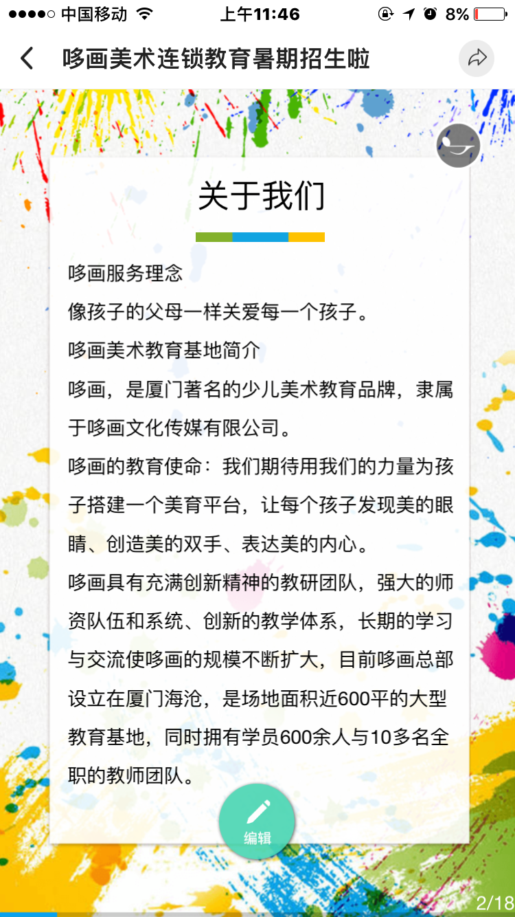 哆画美术 目前开设课程:儿童画,动漫素描,书法 理念:像孩子的父母一样关爱每一个孩子