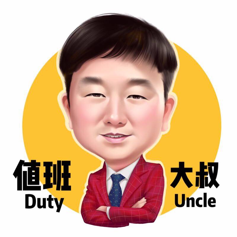要求:采用第三个方案就是第三个方案呢稍微有点儿不像大叔,有点年轻;看看能不能稍微像点大叔;然后那个字儿呢,值班大叔采用我发图片的文字和英文。放在下边儿跟你设计的一样,不要放在两边儿,就采用这采用这个字体和这个英文。OK,就是稍微像一点儿大叔,老一点儿就成了。第三版、谢谢。