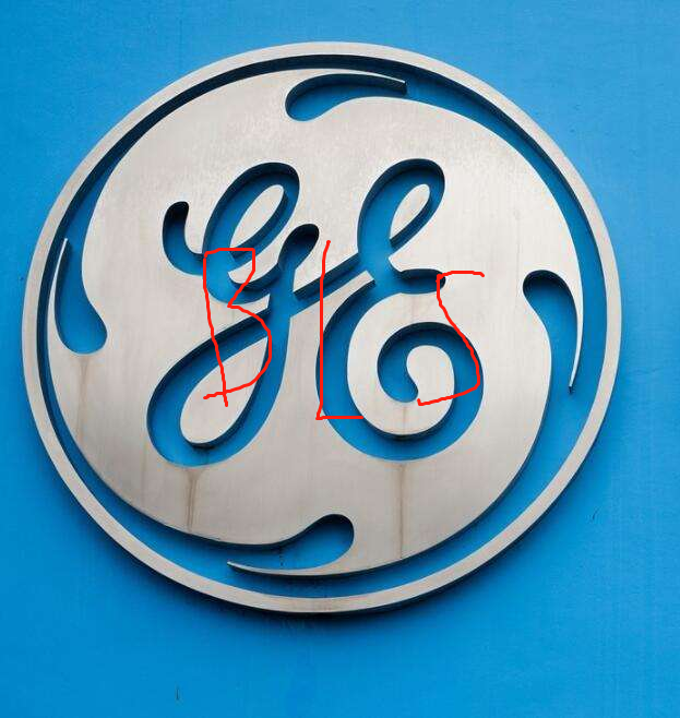 请将示例中的“GE”变为“BLS”三个字母,图案部分要适当变形,设计成类似的图案。