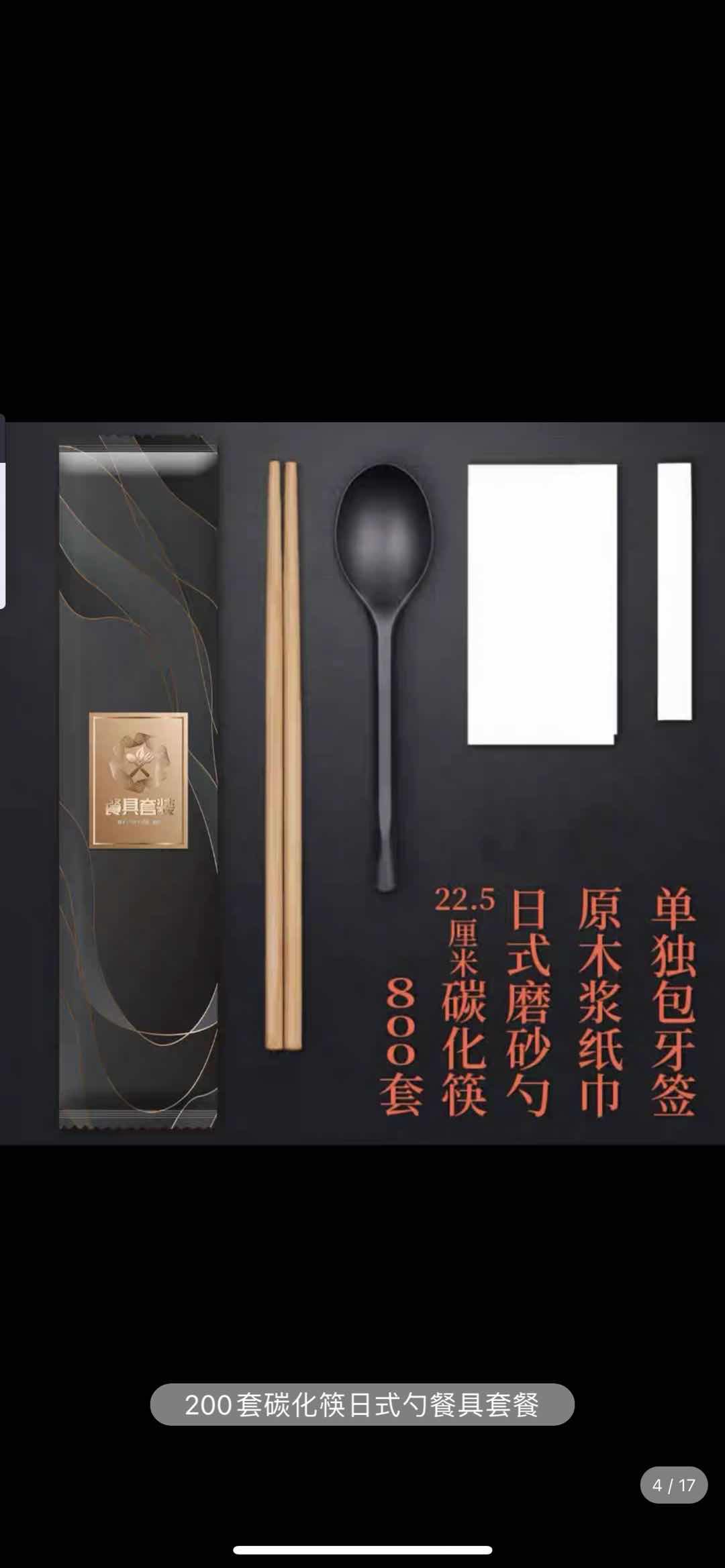 简约,字体好看 排版合适 背景用这个图片的背景 中间换成我们的logo 排版如下: 中间金色换成logo 底部小字: [筷子|汤匙|湿巾|牙签] 餐具已消毒 背面:一个公众号 二维码 一个抖音二维码 加上地址 以及电话 二维码先用临时代替 尺寸: 74mm x 280mm