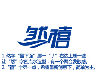 - 1. 不需要重新设计一个图形LOGO,我要求“然禧”两个字就等同于一个LOGO. 2. 关于颜色,我要求整个LOGO只使用一种颜色,千万不能设计成两种颜色的混搭。我们最终应用时,是使用蓝、黑、白,三种颜色任何一种。 3. 我对“绿瘦”的LOGO设计很满意,简洁大气,“绿瘦”两个字本身就成为一个LOGO,没有增加额外的元素。(如下图)